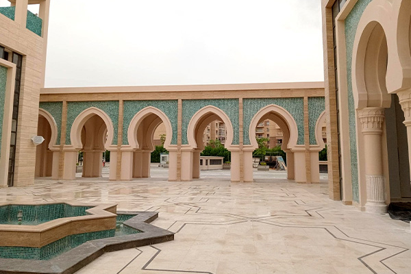 The Al Noor Mosque in Madinaty, New Cairo, was developed by Talaat Mostafa Group and executed by Atrium, with consultancy from Moharram Bakhoum. Built using GRC and GRP materials, the mosque spans a total area of 2,900 square meters. The project was successfully completed within six months, fulfilling all requirements and delivering the expected outcomes on time, while reflecting architectural beauty and spiritual significance.
