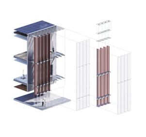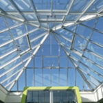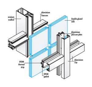 A curtain wall system is an outer covering of a building in which the outer walls are non-structural, utilized to keep the weather out and the occupants in. Since the curtain wall is non-structural, it can be made of lightweight materials, thereby reducing construction costs. When glass is used as the curtain wall, an advantage is that natural light can penetrate deeper within the building. The curtain wall façade does not carry any structural load from the building other than its own dead load weight. The wall transfers lateral wind loads that are incident upon it to the main building structure through connections at floors or columns of the building. A curtain wall is designed to resist air and water infiltration, absorb sway induced by wind and seismic forces acting on the building, withstand wind loads, and support its own dead load weight forces.