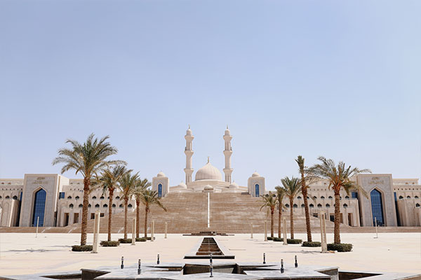 A modern commercial hub complementing the mosque’s architectural grandeur